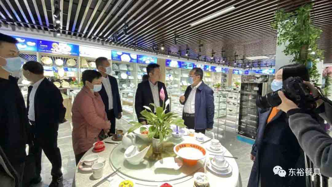 在谭总的带领下株洲政协党组领一行来到样品展厅,株洲市政协主席聂方红对我司的产品质量管控相关进行细致的咨询,我司谭总向领导们详细讲解了星空game餐具的特性和工艺。